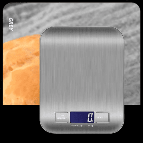Digital Kitchen Scale | 10kg Capacity | 1g Precision | Tare Function | Stainless Steel | Model XF-03 | Silver | Blue Backlight Display | AAA Battery Powered
